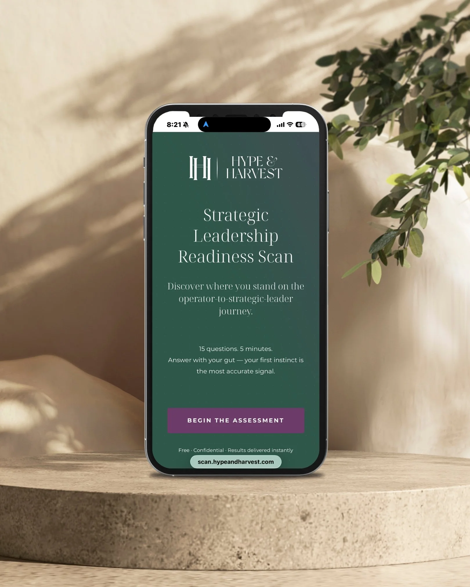 In just five minutes, it maps a leader's current profile against 5 of the 9 dimensions of strategic leadership — and identifies exactly where the operator-to-strategic-leader gap is widest.